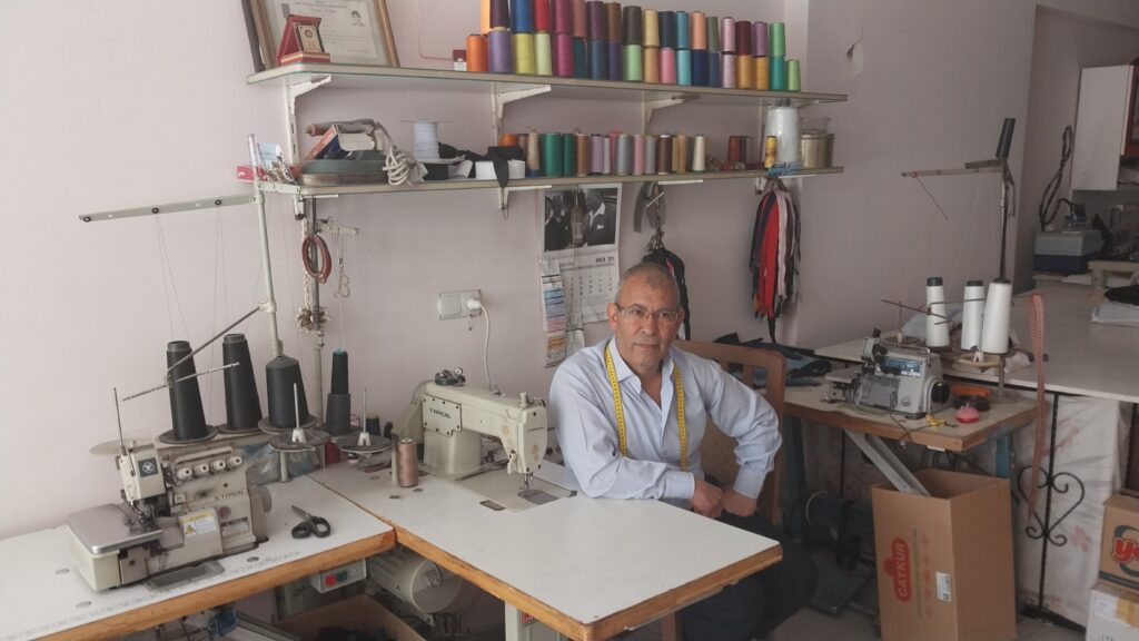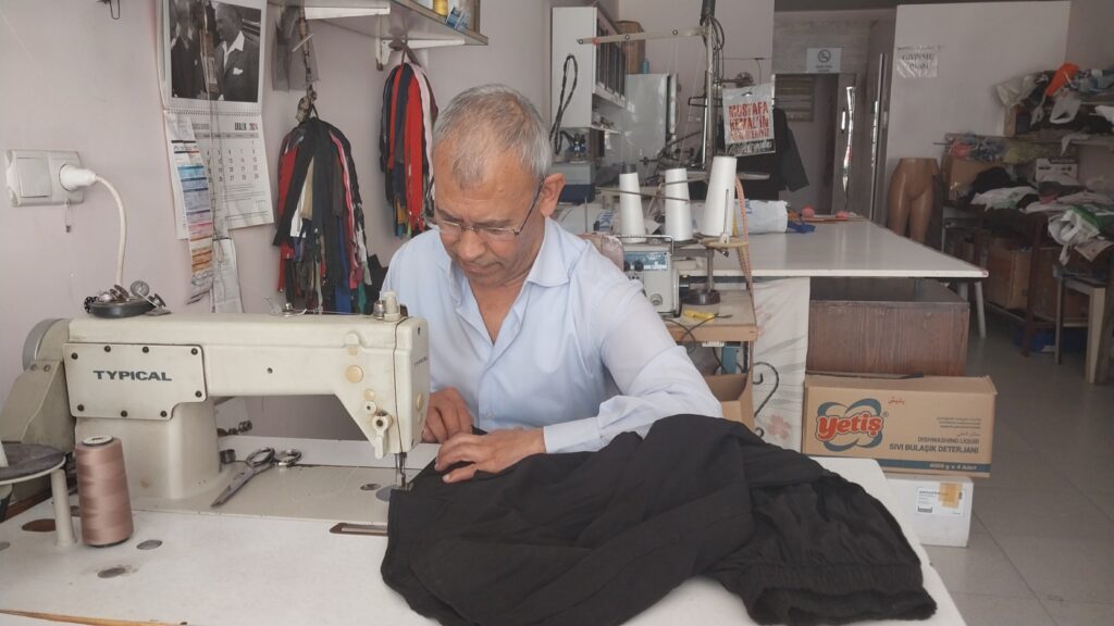 Mersin’in Mut ilçesinde 51 yıldır terzilik yapan Ali Baki (65), mesleğinin geldiği noktadan endişe duyduğunu ve artık sadece tadilat işinin yapıldığını çok nadir elbise dikildiğini, terzilik mesleğinin bitme noktasına geldiğini söyledi. Baki, “1975 yılında çıraklığa başladım. 1975 yılından beri 51 yıl oldu. 51 yıldır bu mesleğin içerisindeyim. Çok yerleri gezdim, çok yerleri dolaştım. Özellikle ağırlık olarak bayan üzerine çalışıyorum. Erkek terziliği de temelimiz” dedi.