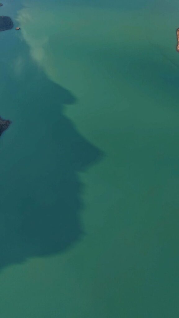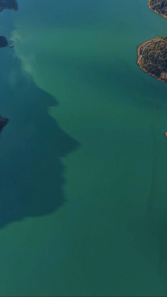 Barajdaki son durum ise hobi amaçlı çekimler yapan sınıf öğretmeni Ahmet Akdeniz tarafından dron ile görüntülendi. Barajdaki doluluğun yanı sıra ilginç bir detay da kadraja yansıdı. Görüntülerde suya yansıyan dağların gölgesi insan silueti ortaya çıkardı.