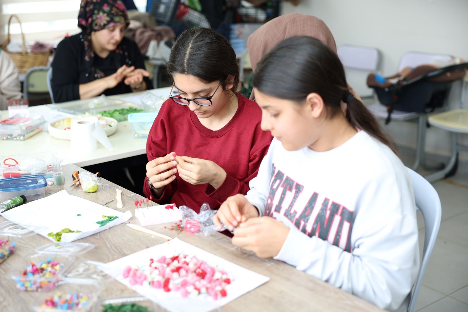 Kültür ve Sosyal İşler Müdürlüğü bünyesinde faaliyet gösteren 10 kültür ve sanat evinde verilen kurslar, katılımcıların yeteneklerini geliştirerek üretime yönlendirmeyi sürdürüyor.