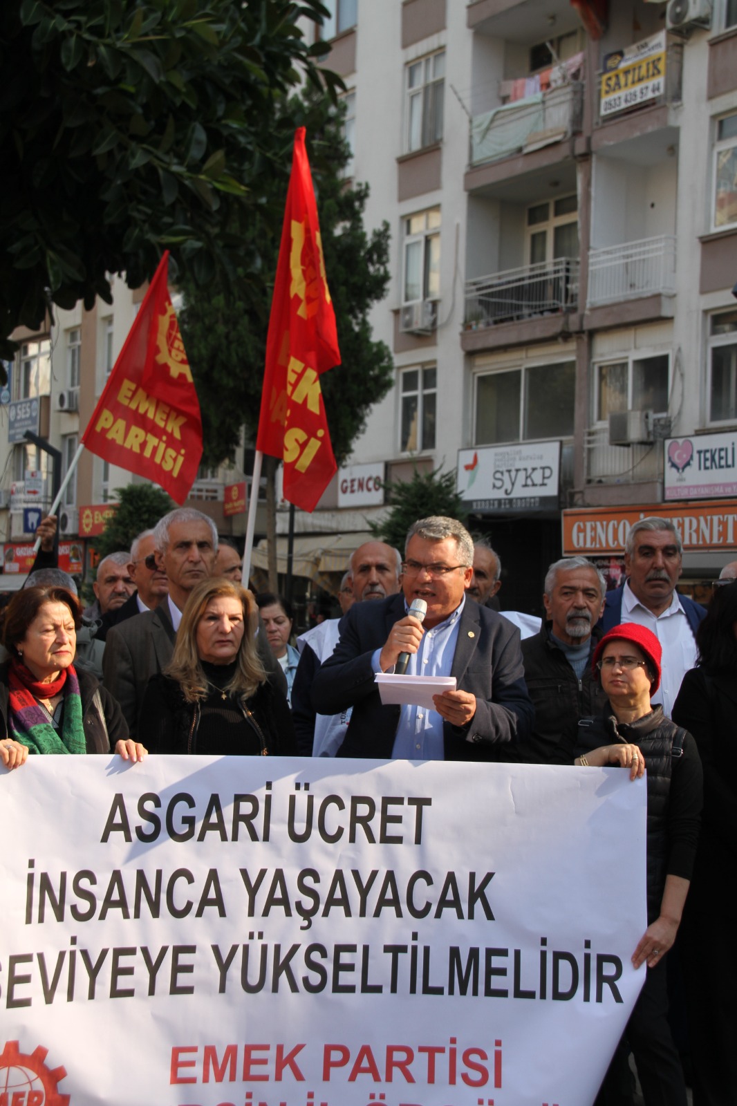 Emek Partisi (EMEP) Mersin İl Başkanlığı, Mersin’in Akdeniz ilçesinde bulunan Özgür Çocuk Parkı’nda yaptığı açıklamada 2026 yılı için belirlenen asgari ücrete sert tepki gösterdi. EMEP Mersin İl Başkanı Sedat Başkavak, asgari ücretin açlık sınırının altında kaldığını belirterek, “Sermaye istedi, saray rejimi belirledi. Milyonlarca işçi ve ailesi sefalete mahkûm edildi” dedi.