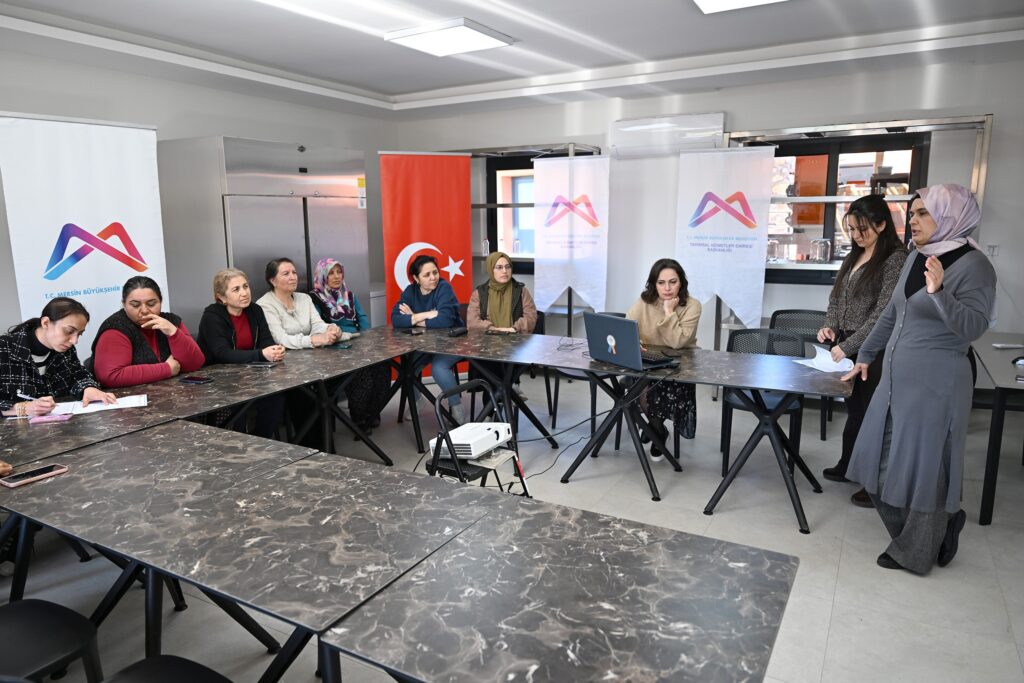 Büyükşehir Belediyesi ile Mersinden Kadın Kooperatifi tarafından, Toroslar ilçesi Hamzabeyli Mahallesi’nde eski köy okulunun dönüştürülmesiyle kurulan atölyede gerçekleştirilen eğitimlerde; makine-ekipman kullanımı, hijyen ve iş sağlığı güvenliği konularında bilgilendirme yapıldı. Büyükşehir Belediyesinde görev yapan gıda mühendisi Döndü Gürlekoğlu tarafından makine ve ekipman tanıtımı yapılırken, gıda teknikeri Ayşegül Tor Karacan kapsamlı hijyen eğitimi verdi. İş sağlığı ve güvenliği uzmanı Harun Alptekin Topçu ise üretim sürecinde karşılaşılabilecek riskler ve güvenli çalışma yöntemleri hakkında bilgi aktardı.